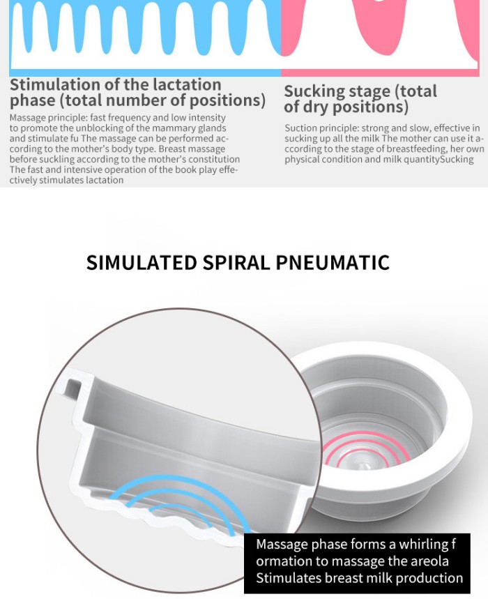 Máy hút sữa điện một mặt dạng tròn nhỏ của nhà máy của chúng tôi có ba cài đặt thuận tiện để dễ sử dụng: thứ nhất, chế độ massage để nhẹ nhàng kích thích sản xuất sữa và chuẩn bị vắt sữa; sau đó là chế độ bơm để vắt sữa nhanh chóng, hiệu quả với ít sức lực nhất; và cuối cùng là chế độ mút mô phỏng lực và nhịp mút của bé, mang lại cho bạn cảm giác thoải mái như khi bú.