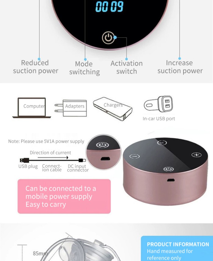 Máy hút sữa điện một mặt tròn nhỏ này cung cấp một số chế độ cho bạn lựa chọn. Có chế độ massage để kích thích tiết sữa, chế độ bơm để vắt sữa nhanh hơn và chế độ mút mô phỏng động tác bú của bé để có trải nghiệm tự nhiên và thoải mái hơn. Bạn có thể điều chỉnh lực hút phù hợp với độ nhạy và lượng sữa của mình. Bạn cũng có thể chuyển đổi giữa lực hút một mặt và lực hút hai mặt, điều này chắc chắn sẽ nhanh hơn. Nó nhẹ và được thiết kế tiện lợi. Phiên bản không dây đi kèm pin lớn 1500mAh, cho phép sử dụng khoảng hai giờ cho một lần sạc đầy. Bộ phận chính nhỏ cũng dễ dàng cất giữ và mang theo. Các bộ phận tiếp xúc với sữa như loa đều được làm bằng chất liệu silicon hoặc PP mềm giống như núm vú giả cho bé. Chúng có thể đun sôi và dễ làm sạch. Loa vừa khít với ngực, đảm bảo khả năng hút thoải mái.